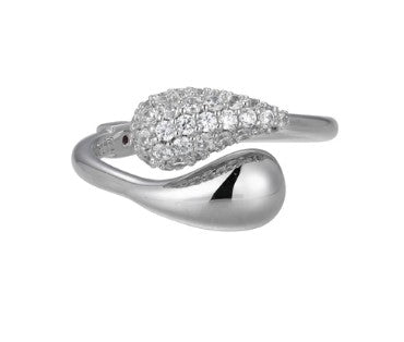 Sterling Silver Symmetrical Teardrop Ring with Cubic Zirconia's - Size 8