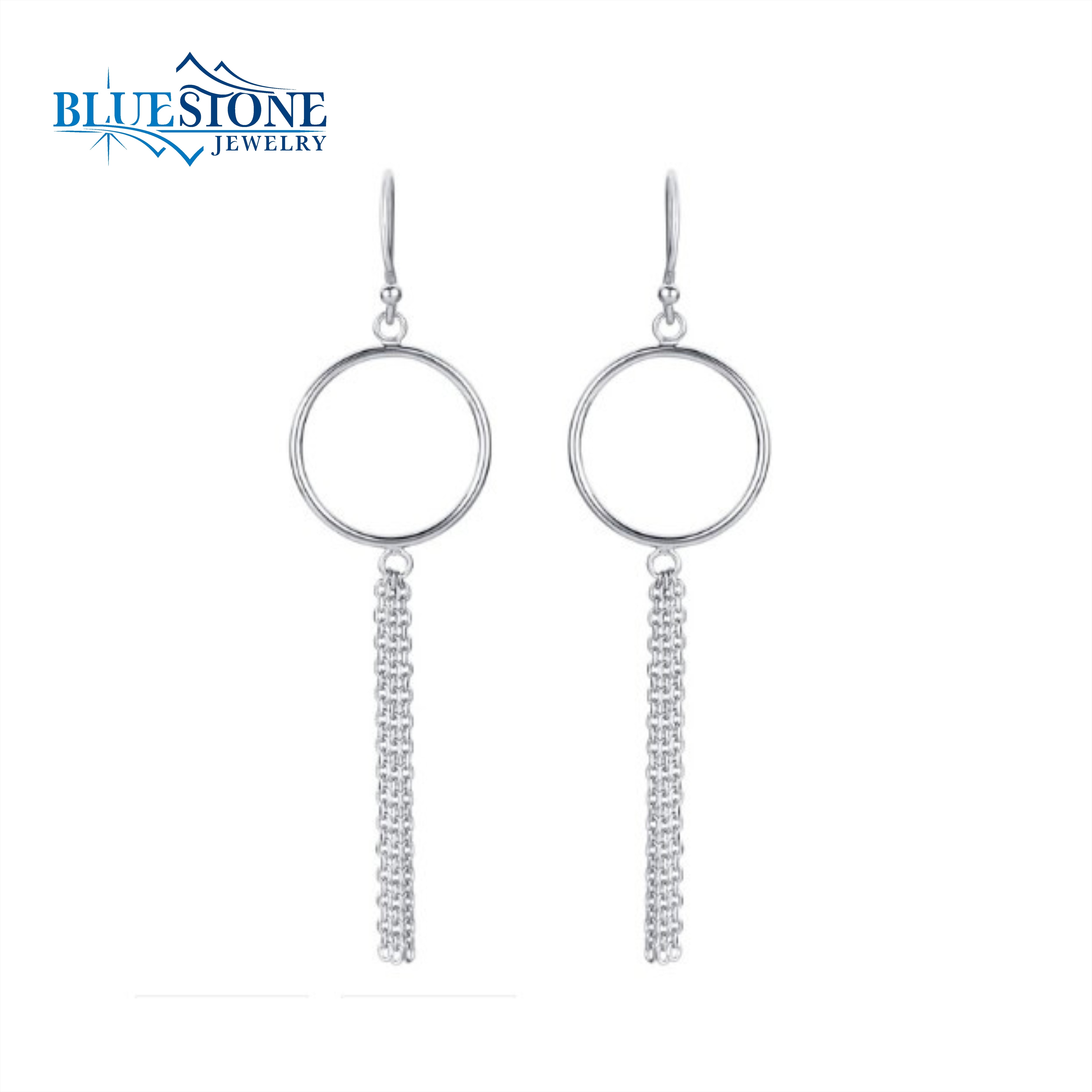 Sterling Silver Rhodium Plated Tassel Drop Earrings. Measure 2.25 Inches Long.