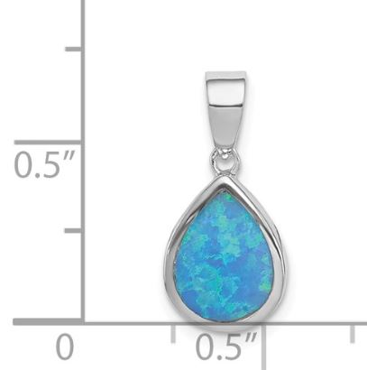 Sterling Silver Rhodium Plated Tear Drop Pendant with One Lab Created Opal. Measures 7mm x 18mm.Chain is sold separately. Comes on an 18 inch metal alloy DISPLAY chain.