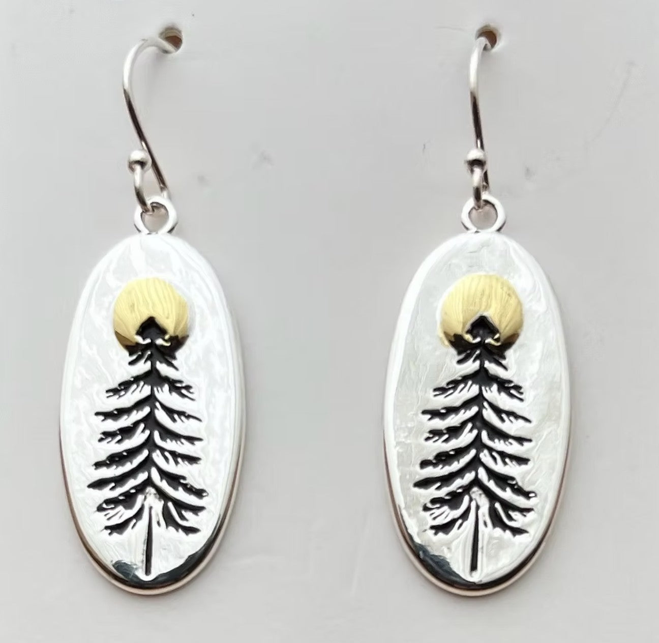 Sterling Silver Earrings with French Hooks Featuring Tree and Full Moon Design with 14 Karat Yellow Gold Accent. Discs Measure 1/2 Inch by 1 Inch.All sales benefit the Vietnam Relief Services charity, improving the quality of schools in remote parts of Vietnam.