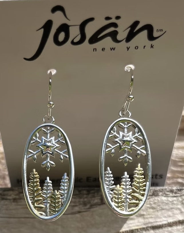 Sterling Silver Two-Tone Tree and Snowflake Earrings