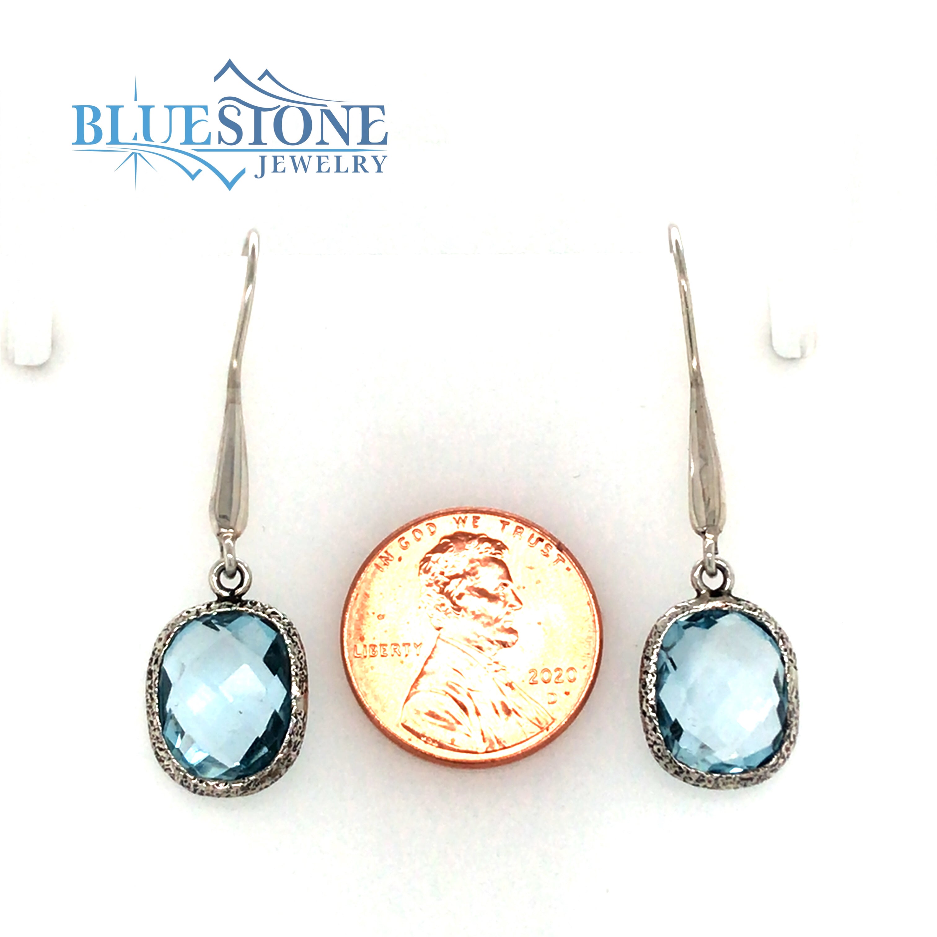Sterling Silver Wire Earrings with Two 9mm x 12mm Briolette Cut Blue Topaz Gemstones. Measure 1.75 inches long.Local Lake Tahoe Designer.