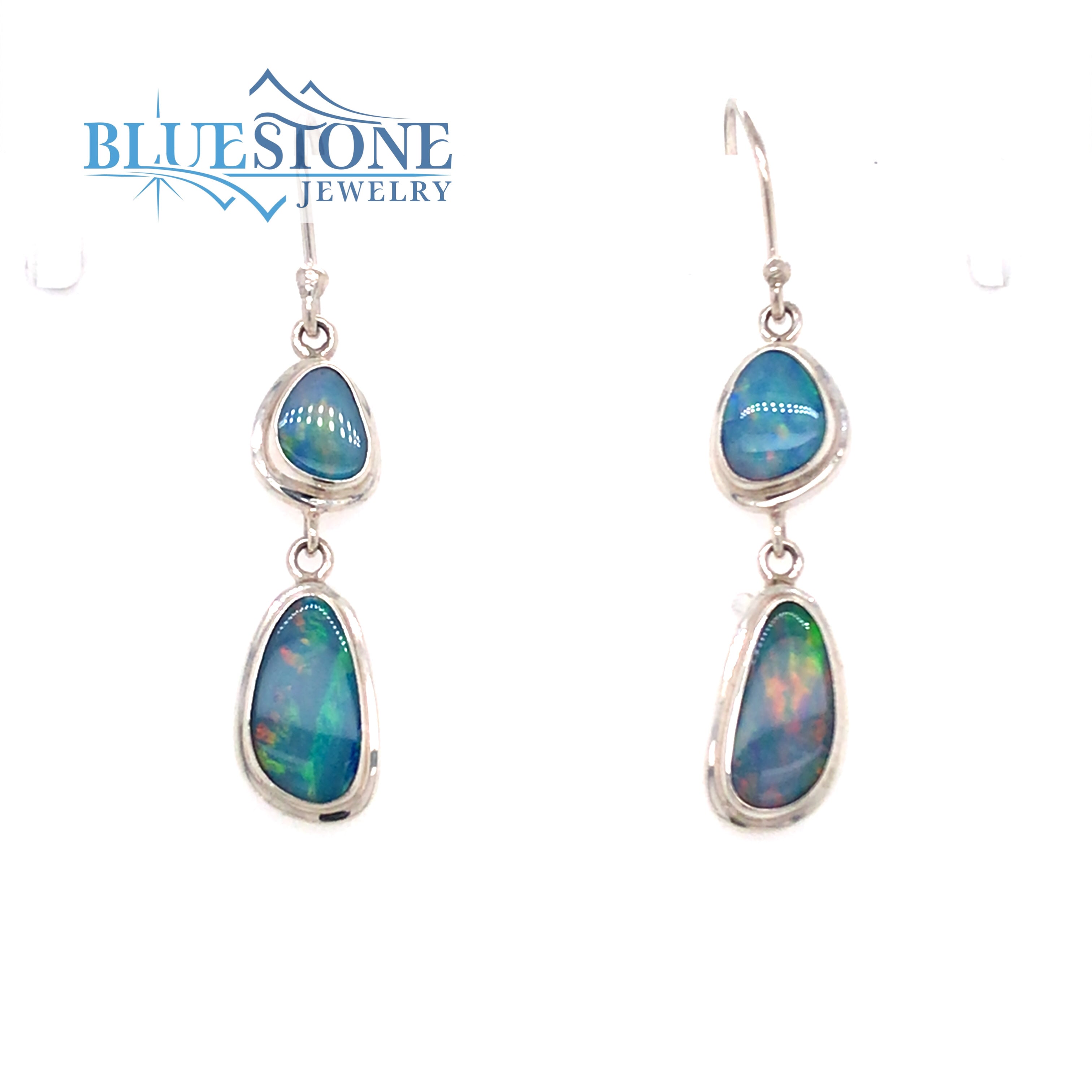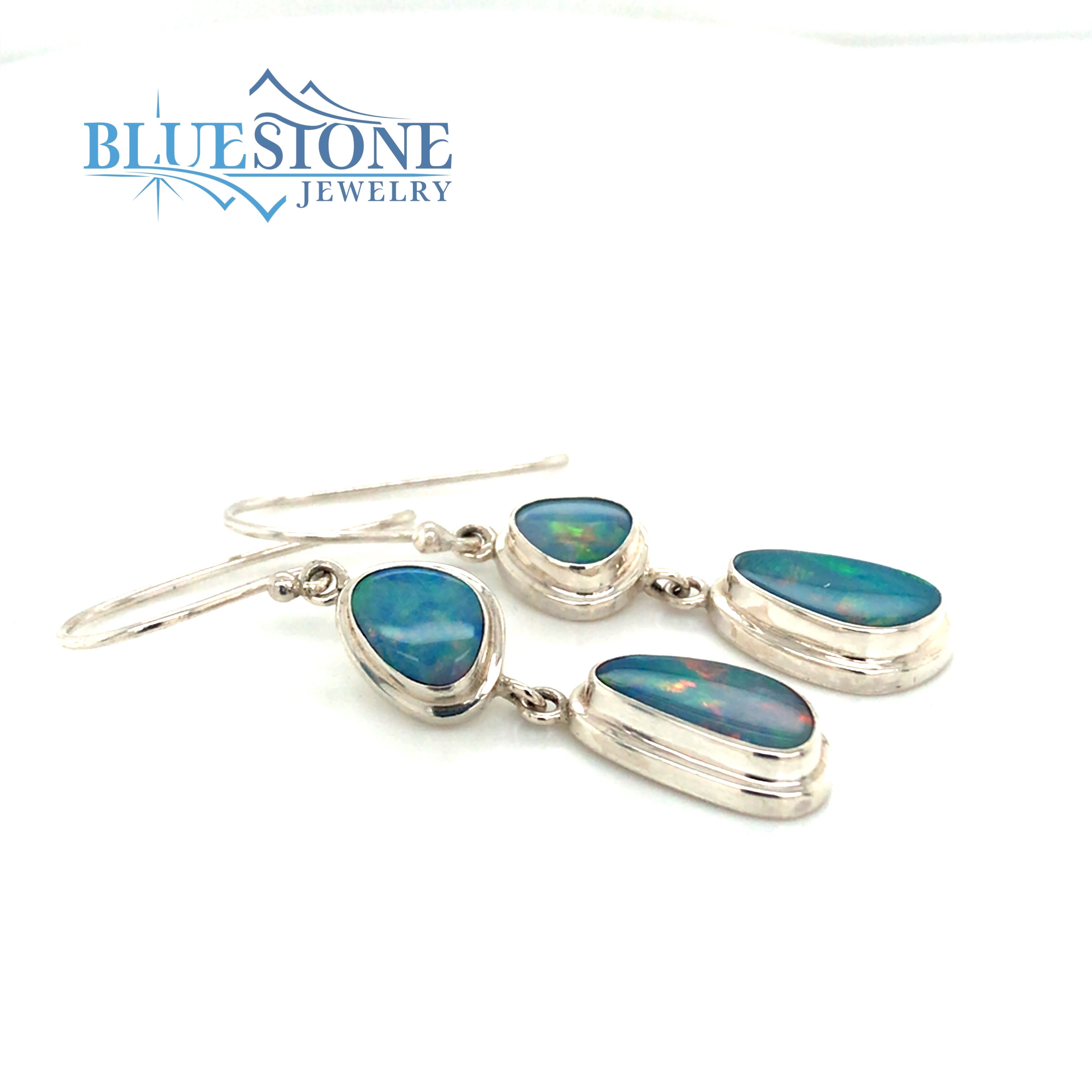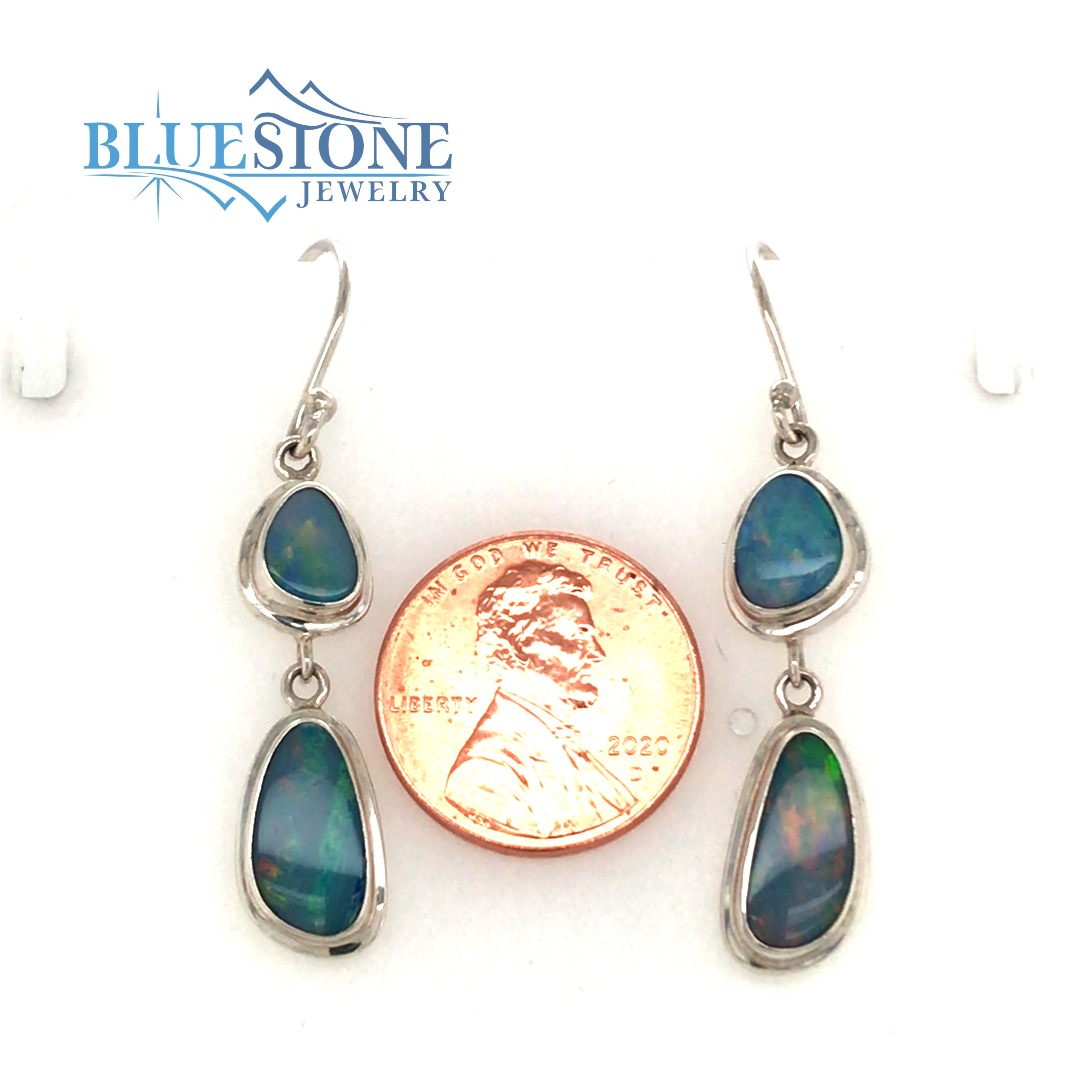 Sterling Silver Wire Earrings with Four Natural Australian Opals. Measure 1.75 Inches Long.Local Lake Tahoe Designer.