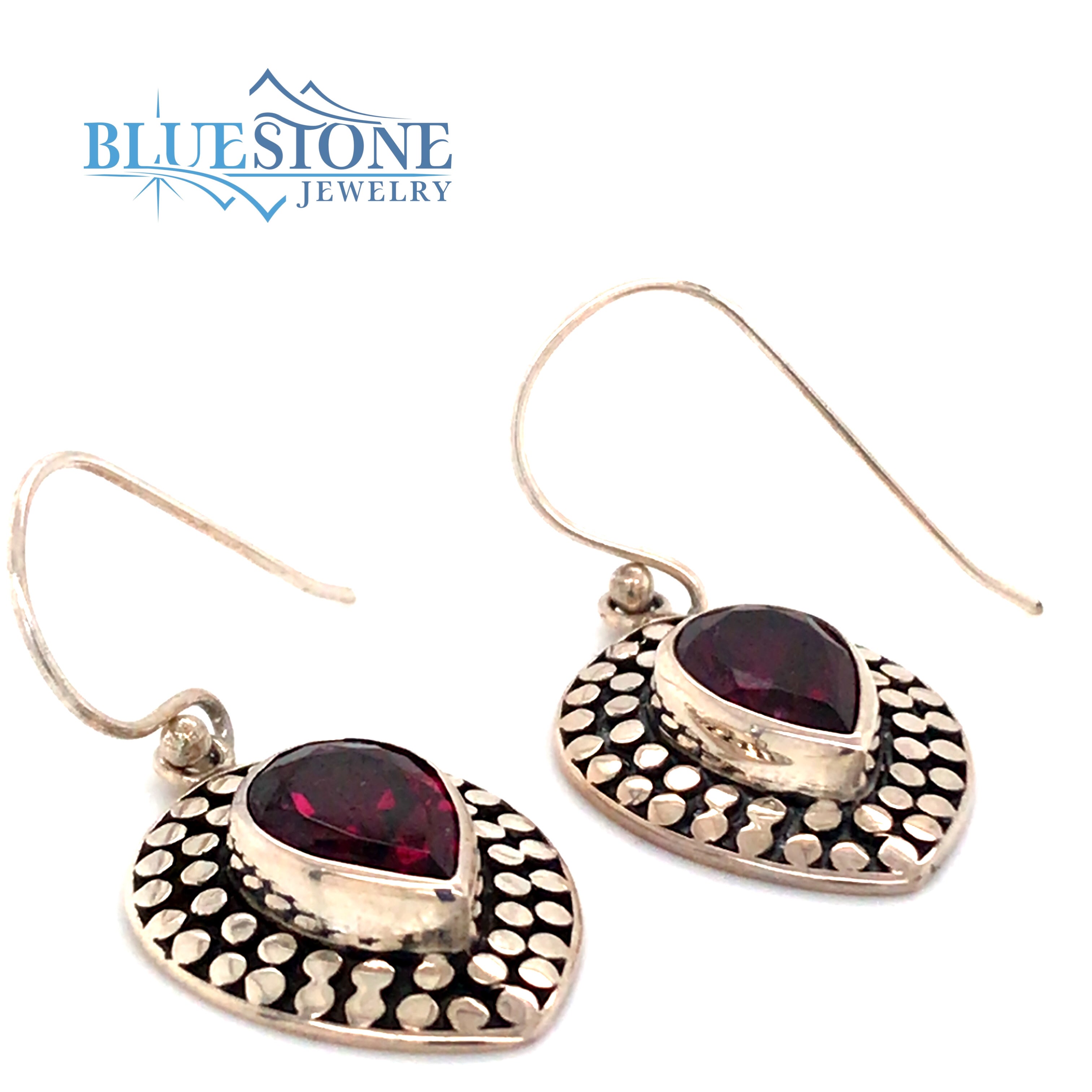 Sterling Silver Wire Earrings with Two Pear Cut Garnets. Garnets Measure Approximately 7mm x 10mm. Local Lake Tahoe Artist.Lake Tahoe Designer