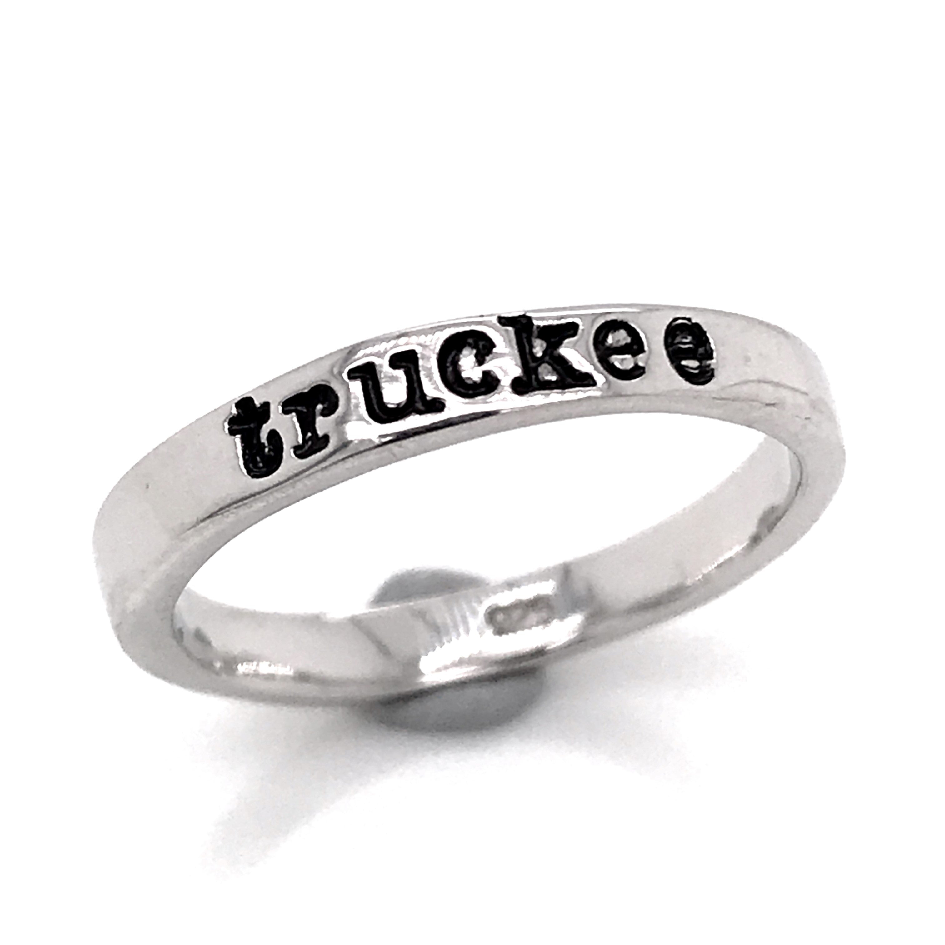 Sterling Silver with Rhodium Plating Ring with "truckee" stamp. Ring size 8.5