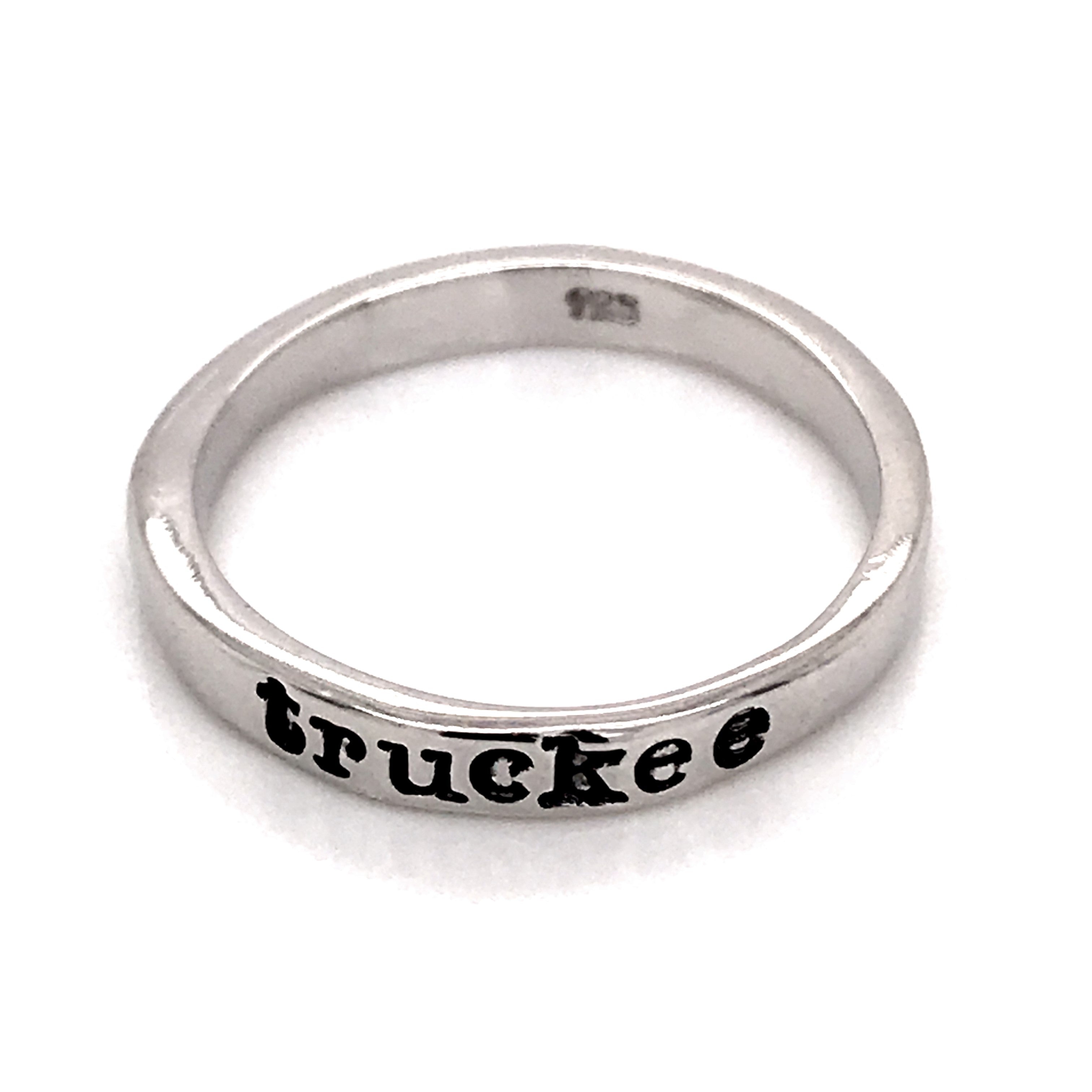Sterling Silver with Rhodium Plating Ring with "truckee" stamp. Ring size 9.5.