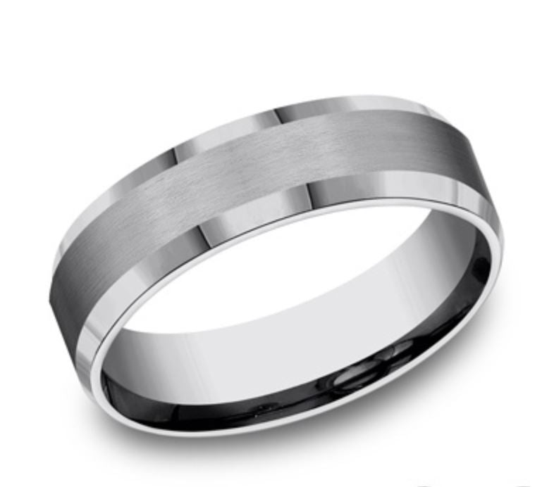 Tungsten 6mm Comfort Fit Wedding Band. This elegant 6mm comfort-fit Tungsten band features a satin-finished center and high polished beveled edges that is the perfect balance of style and class.Ring Size 10RING IN STOCK IS AN ALLOY SAMPLE RING. THIS RING-MADE TO ORDER.Other Ring Sizes and Metals Available. Available in 10K/14K/18K Gold, Platinum, Palladium, Cobalt, Titanium, Argentium Silver, Tantalum, and Tungsten. Pricing Will Vary. Please inquire for more details.