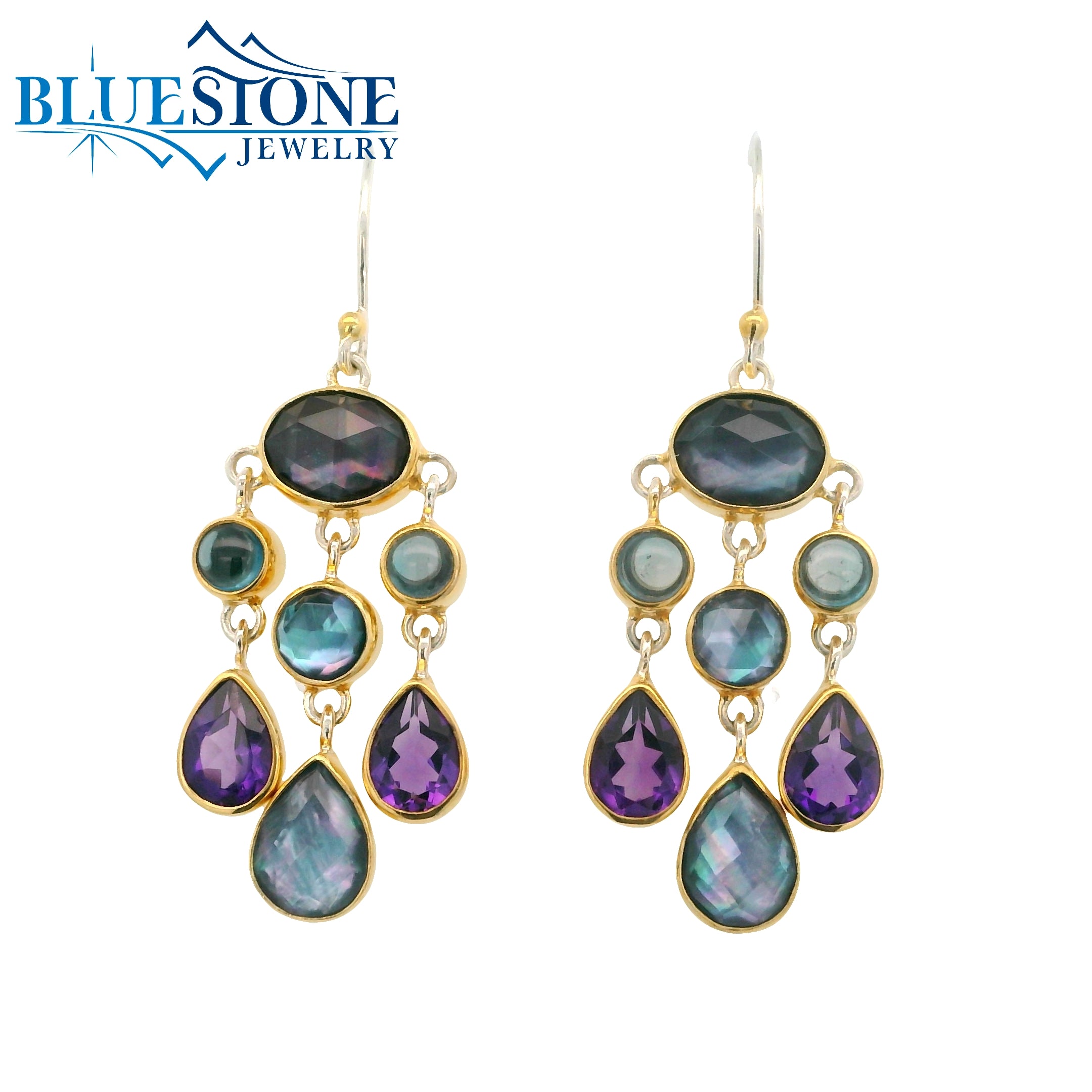 Two-Tone Earrings w/ Topaz, African Amethyst & Mother of Pearl